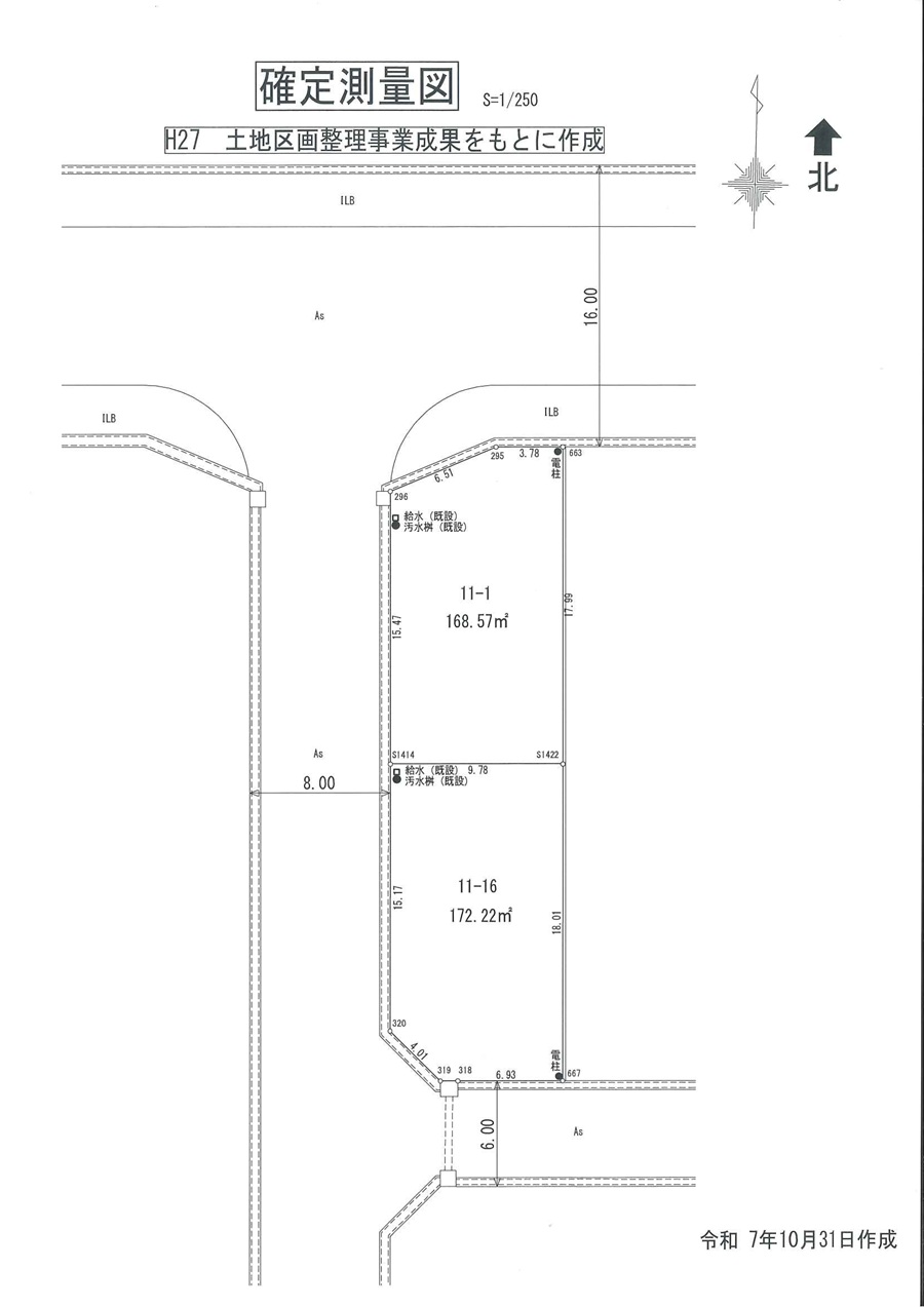 | 11番16 | 172.22 ㎡ | 52.09 坪 | ¥350,000 | ¥18,231,500 | 上下水道負担金65万円別途 |